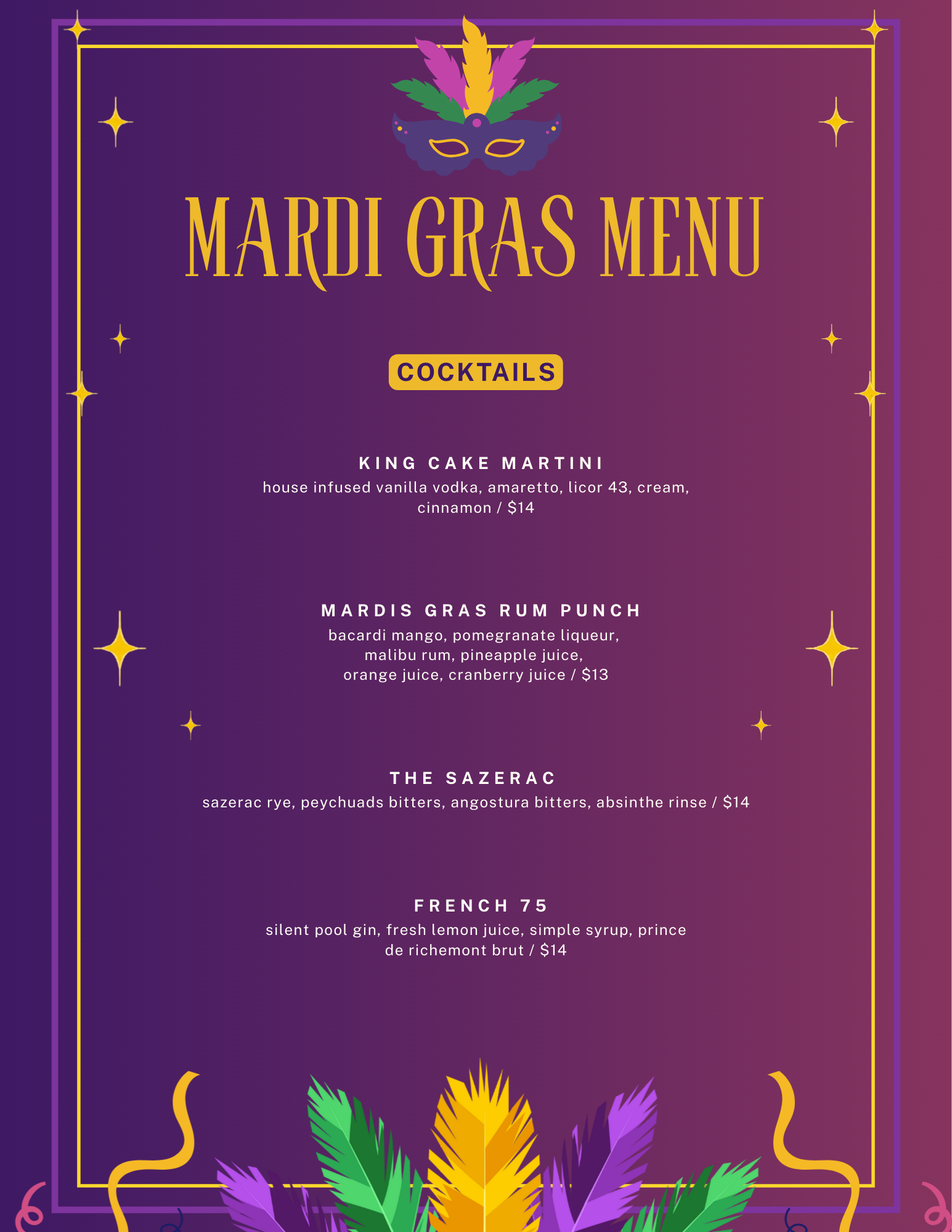 – “Fat Tuesday” Mardis Gras Menu 2026 –